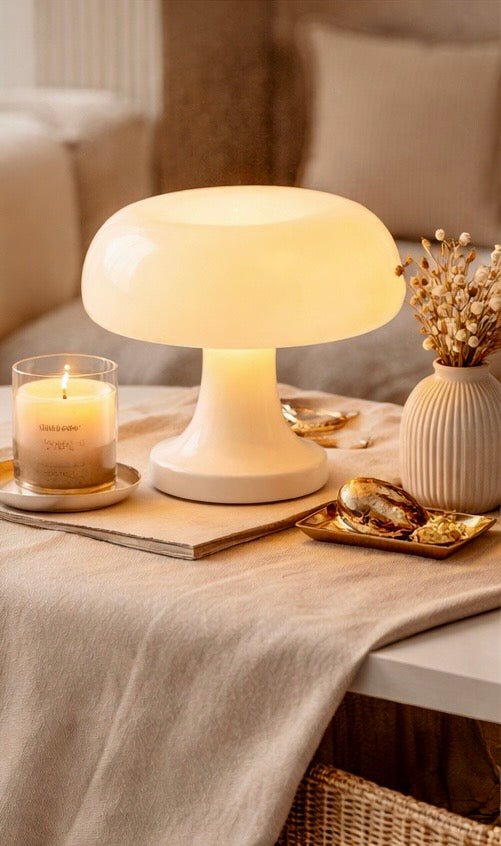 Avec sa forme iconique en champignon et ses couleurs élégantes, cette lampe devient un véritable objet de décoration.